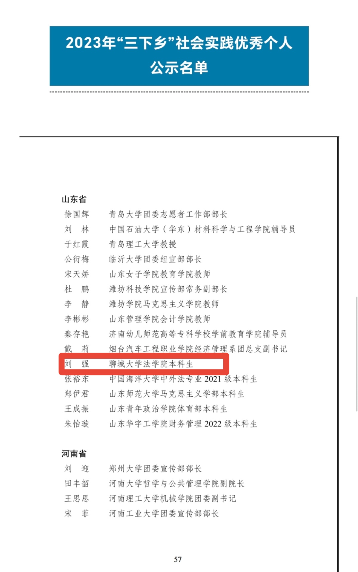 近日,共青团中央公布《2023年全国大中专员工志愿者暑期文化科技卫生“三下乡”社会实践活动总结通报结果公示》,2021级本科生刘强获评全国优秀个人。