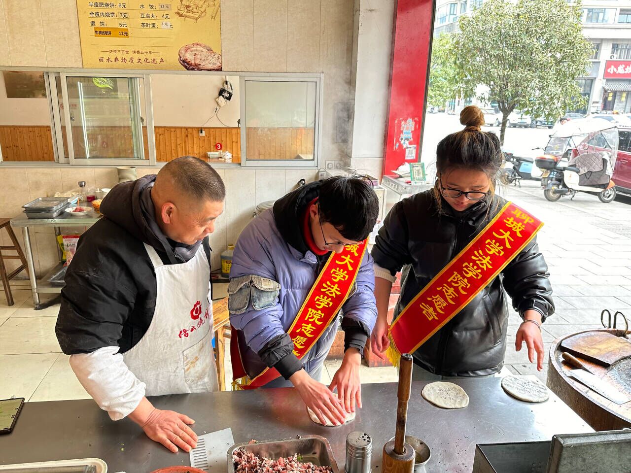 为更好地宣传缙云烧饼,助力产业振兴,2月1日,伟德国际1946官网志愿者走进浙江省丽水市缙云县壶镇镇举办以“非遗文化振兴产业,富民产业兴旺家乡”为主题的活动。