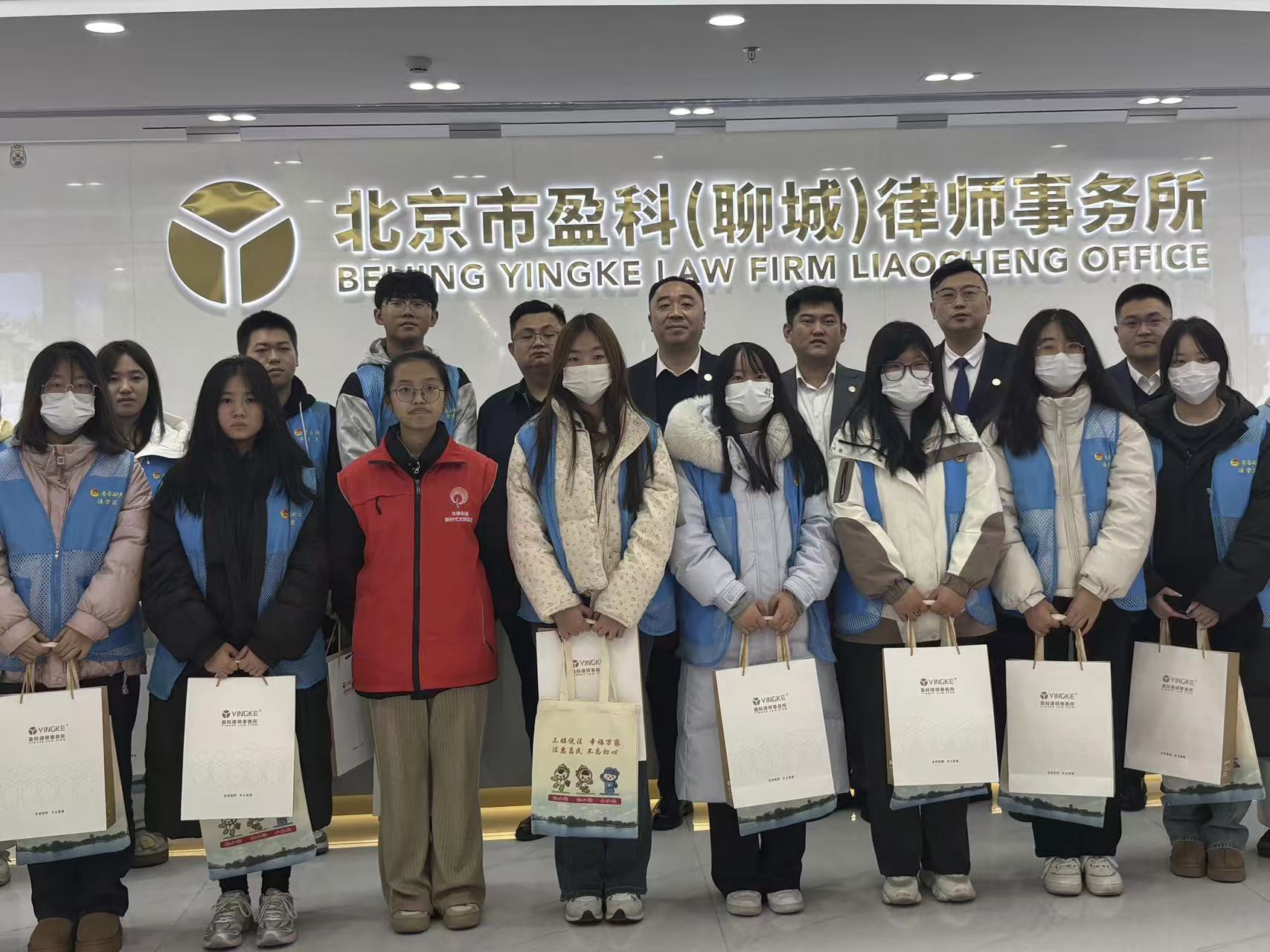 12月5日,伟德国际1946官网志愿者走进北京市盈科(聊城)律师事务所举办以“律途探源,法界寻真”为主题的活动,2023级、2024级部分本科生、2024级部分研究生参与此次活动。